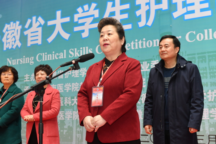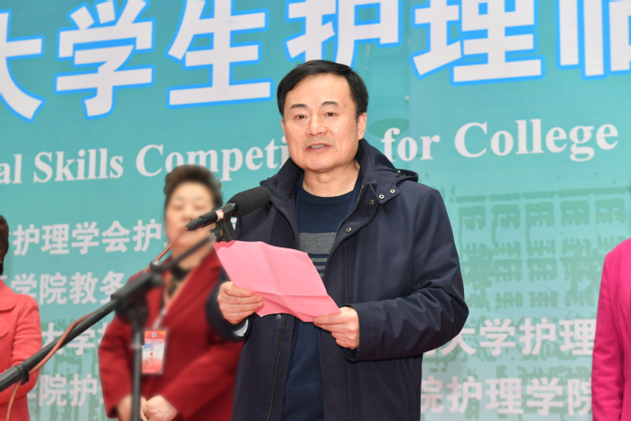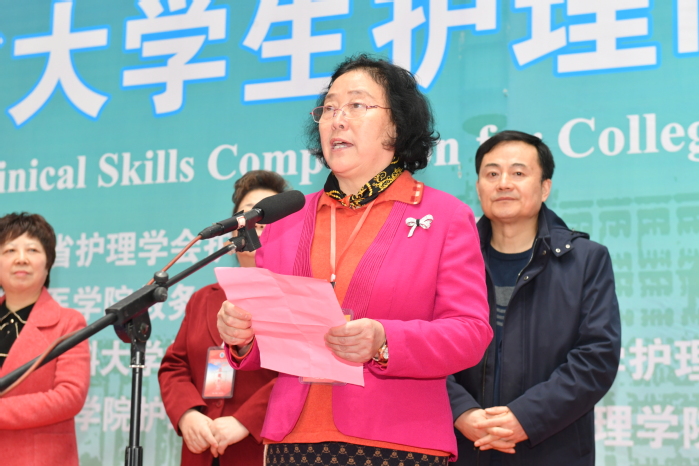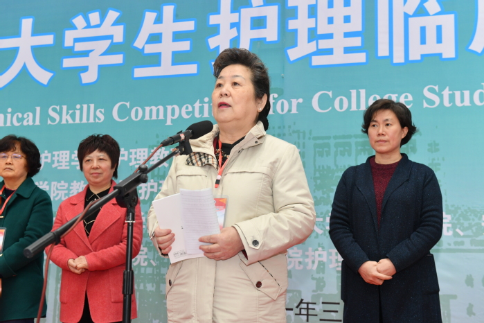 中华护理教育专委会主任委员、教育部护理专业认证委员会副主任委员姜小鹰教授宣布竞赛开幕