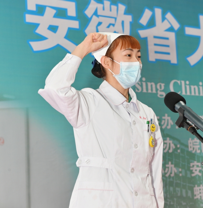 裁判员代表、省护理学会副理事长陶秀彬宣誓