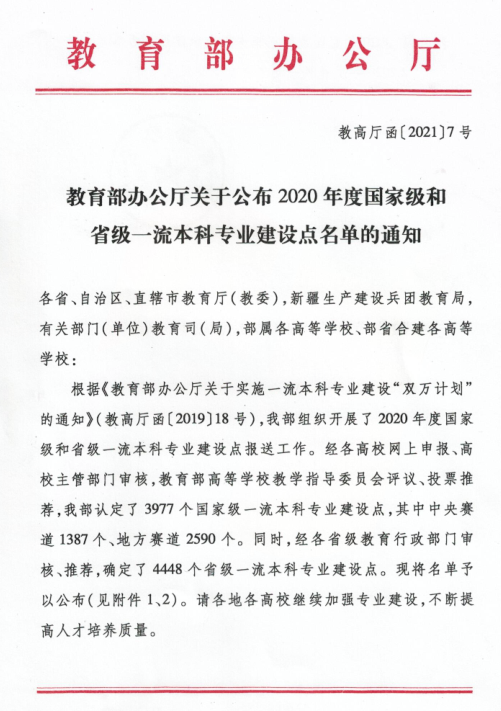 近日,教育部办公厅公布2020年度国家级和省级一流本科专业建设点名单,我校临床医学、护理学2个专业喜获国家级一流本科专业建设点。