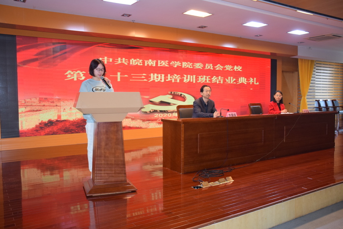 任苔蓉宣读了《关于表彰中共皖南医学院委员会党校第五十三期培训班优秀学员的决定》。