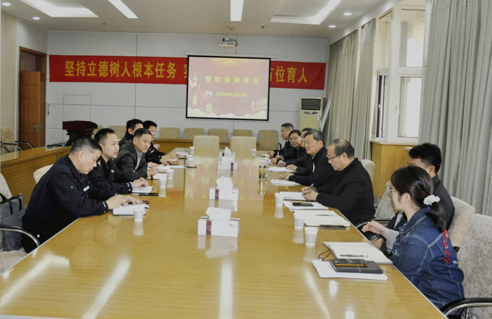 11月17日,我校召开警校会商会议,弋江公安分局副局长江世贵,高校园区派出所所长张金荣、教导员李洋,国保大队大队长张翔、副大队长殷涛,联系民警周英坤,学校办公室、宣传部、学生处、后勤管理处(防控办)、保卫处、团委负责人参加会议。会议由副院长吴金月主持。