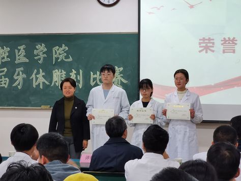 为提高学生专业学习兴趣,增强学生动手操作能力,提高教育教学质量,我校于2020年11月13日下午在逸夫科技楼3201教室举办第十一届牙体雕刻比赛。副院长吴金月,教务处处长文育锋,口腔医学院党委书记院长柴琳、党委副书记副院长张琪琪,以及部分口腔专业教师出席了比赛,口腔医学院2018级全体同学参加了本次比赛。比赛由柴琳主持。