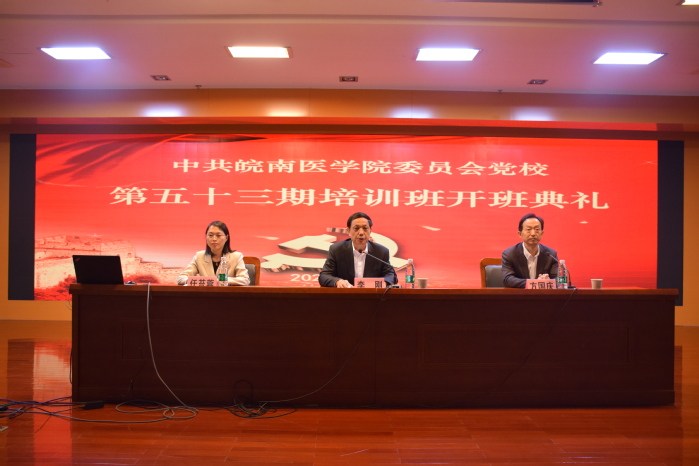 2020年10月31日,中共皖南医学院委员会党校第五十三期入党积极分子和发展对象培训班开班典礼在图书信息大楼三楼报告厅举行。校党委副书记、党校校长李刚,校党委委员、组织部部长、党校常务副校长方国庆,组织部副部长、党校副校长任苔蓉出席开班典礼。开班典礼由方国庆主持。