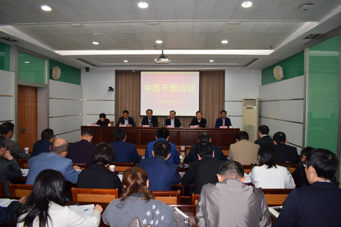 2020年10月22日,我校在图书信息楼视频会议室召开中层干部会议,部署临床医学专业认证工作。校领导章尧、廖圣宝、李刚、吴金月、贾贤燕、徐朝阳和全校处级干部参加会议。会议由党委副书记李刚主持。