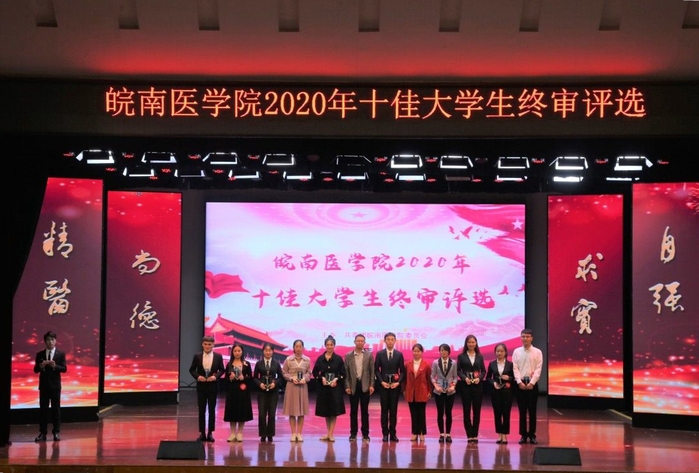 最终经评委打分,杜林虎、李佳音、俞程蓉等10名同学荣膺2020年校“十佳大学生”称号,苏珊珊等10名同学获校“优秀大学生”。