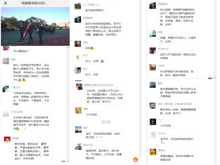 在此次开学典礼暨军训动员大会中,学校还精心制作播放了“众志成城 同心抗疫”宣传片,首次采用“现场+线上直播”的方式对典礼现场进行直播,场外人员可通过网络链接同步进行观看。至活动结束时,直播共计播放42657人次,收到来自新生家长、校友等祝福1000余条,获得了一致好评。