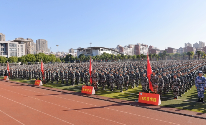 老生代表、研究生学院2019级钱海鹏同学,新生代表、临床医学院夏子娴同学,军训教官代表王本初分别作了发言。