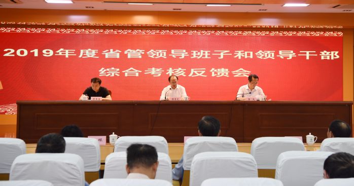 2020年9月25日上午,根据省委综合考核工作统一部署,省委第十五综合考核组副组长、省档案馆副馆长程潜龙来校向我校反馈2019年度省管领导班子和领导干部综合考核情况。省委第十五综合考核组成员、省委组织部办公室工作人员李琛出席会议,校领导章尧、廖圣宝、李刚、吴金月、贾贤燕、徐朝阳,处级部门处级干部、处级单位党政正职(含主持工作的副职),省级以上“两代表一委员”、民主党派市级以上主委、学校教代会执委,校本部正高以上职称人员、直属附属医院双正高人员和学生代表参加会议。会议由校党委书记章尧主持。