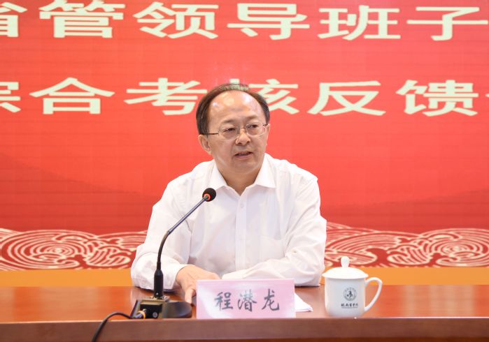 考核组在肯定我校工作的同时,也指出了存在的问题和不足,希望学校进一步增强忧患意识,弘扬严实作风,树立新发展理念,提升内生动力,防范廉政风险。程潜龙强调,学校党委要团结带领全校干部职工和广大师生,坚持以习近平新时代中国特色社会主义思想为指导,深入学习贯彻习近平总书记考察安徽重要讲话指示精神和关于教育的重要论述,坚决贯彻落实党中央和省委的决策部署,坚决贯彻落实新发展理念,大力弘扬伟大的抗疫精神,全面贯彻落实国务院办公厅关于加快医学教育创新发展的指导意见,坚持改革开放,坚持高质量发展,抢抓发展机遇,积极应对挑战,知重负重担当,勇于克难奋进,努力在建设“国内有影响、特色鲜明的区域性高水平医科大学”上取得更大的进展,在服务地方经济社会发展上作出更大的贡献,在促进构建新发展格局中展现更大作为,在服务加快建设美好安徽上贡献更大的力量。