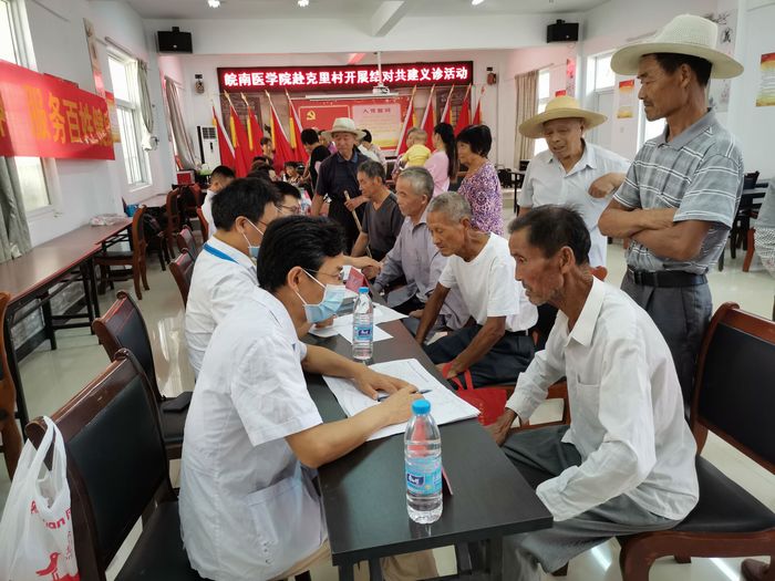 爱心义诊送健康。为方便村民获得优质医疗服务,学校联合第一附属医院和第二附属医院分别在两村开展“弘扬抗疫精神,服务百姓健康”爱心义诊活动。来自两所医院老年医学科、内分泌科、消化内科、骨科、皮肤科、眼科等科室的20位专家,为村民提供病情诊断、健康咨询、免费血压血糖测量等服务,并发放健康宣传单和常用药品,受到村民热烈欢迎。