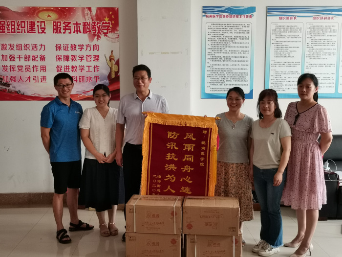 今年7月,受强降雨及长江中上游来水影响,芜湖市防汛形势异常严峻。汛情就是命令,防汛就是责任。我校党委深入贯彻落实习近平总书记关于防汛救灾工作的重要指示精神,第一时间作出部署,积极行动,动员全校各级党组织和广大党员在抗洪救灾中发挥战斗堡垒和先锋模范作用。7月24日,学校下发《关于组织动员基层党组织和广大党员参与防汛救灾工作的通知》,决定组建“皖南医学院防汛抗洪突击队”,协助学校所在的澛港街道做好高温天气下长江防汛工作。短短两天时间内,学校19个二级党组织90名教职工挺身而出,积极报名,服从学校组织部统一调度和排班。8月5日至9日,学校防汛抗洪突击队投入到6.4公里长江大堤巡堤查险任务中,驻扎4个观察点全天候24小时不间断值守,平均每名队员每天驻守观察点8小时,2小时巡查堤坝一次。队员们不畏高温酷暑,坚守岗位,认真做好交班记录和巡堤查险任务。为做好防汛保障工作,鼓舞士气振人心,8月5日和6日,校党委书记章尧,党委副书记、院长廖圣宝分别到长江线、漳河线观察点看望慰问街道防汛人员和我校突击队员。