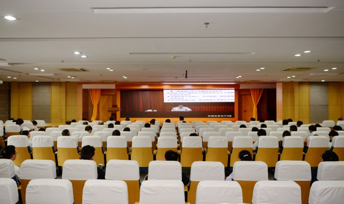 为深入学习《习近平谈治国理政》第三卷,推动广大党员、干部和群众学懂弄通做实习近平新时代中国特色社会主义思想,7月31日上午,省委教育工委举行全省教育系统《习近平谈治国理政》第三卷学习辅导报告会,会议设主会场和视频分会场。报告会由省委教育工委书记钱桂仑主持,省委党校副校长胡忠明教授应邀担任主讲。学校在图书信息楼三楼学术报告厅设立视频分会场,校领导章尧、廖圣宝、李刚、吴金月、贾贤燕、徐朝阳,学校中层干部、专职思政课教师、辅导员和师生代表共计140余人参加了视频学习会。