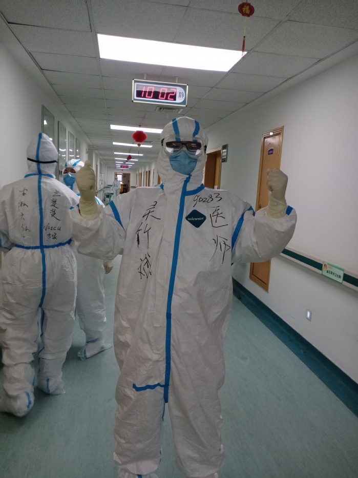 有一种浪漫,是与你携手、并肩作战。吴竹斌夫妇二人作为与病毒面对面较量的医生和疾病防控专家,他们比谁都更清楚新冠病毒的传染性和致病力。但他们更清楚,身为医者肩上所背负的责任,是国家的期许更是人民的期盼。在此次抗击新冠肺炎疫情中,夫妇二人携手并肩作战,吴竹斌作为科室负责人,在疫情初起时就积极响应号召,提前在科室内动员并提交科室请战书。2020年2月19日,他随安徽省第六批援鄂医疗队,在武汉市中心医院后湖院区发热六病区参与新型冠状病毒感染的肺炎患者救治工作。吴竹斌发挥重症专业优势,根据患者的不同病情,给予不同的氧疗措施以及维持水、电解质及酸碱平衡和胃肠道菌群调整等治疗策略。面对一家多人感染新冠肺炎而焦虑不安的患者,吴竹斌用细心、耐心与他们面对面沟通交流,同时利用值夜班时间与家属电话沟通告知详细病情,以缓解家属焦急之情。在“希望的天空”医患沟通群中,有家属对他们给予真诚言谢与至高礼赞:“我们所有武汉人都会一生记得你们曾经给予的救治、安慰和帮助!待到春暖花开时,武汉人带你们去东湖赏樱!”他所在的支援医疗队“收治率”与“治愈率”走在全国各支援医疗队方阵前列,取得了患者“零死亡”、医务人员“零感染”的优异成绩。