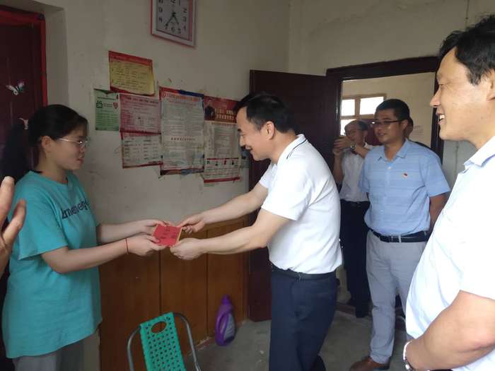 会后,廖圣宝一行深入部分建档立卡贫困户家中进行走访慰问。每到一户,廖圣宝都与户主进行亲切交流,详细询问今年汛期受灾及生产生活情况,帮助仔细算好收支账,鼓励他们要坚定必胜信念,主动作为、勤劳致富,切实实现稳定脱贫,并代表学校给困难户送上祝福与慰问金。