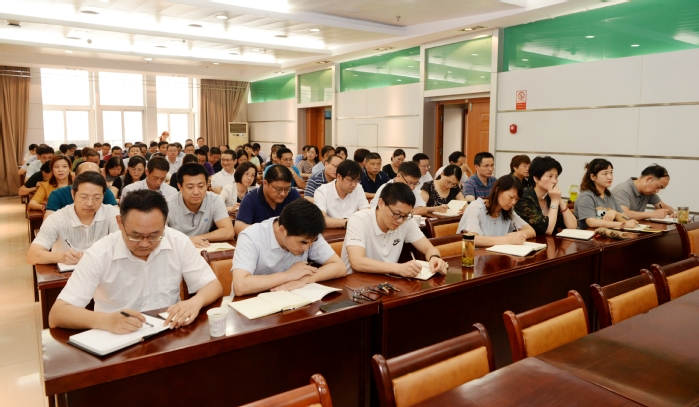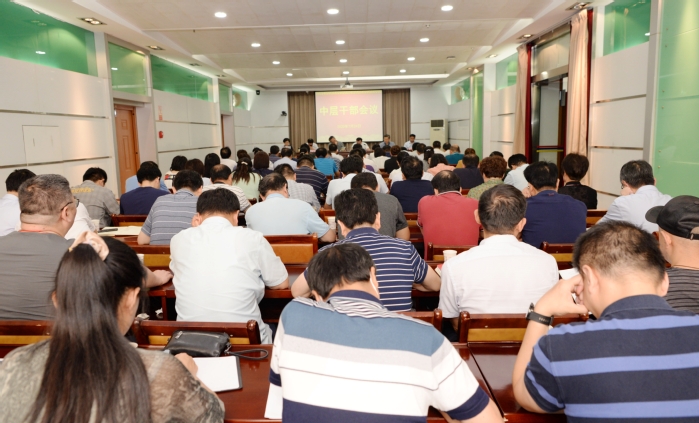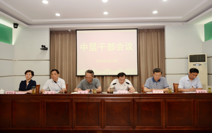 2020年7月24日,我校在图书信息楼视频会议室召开中层干部会议,总结上半年主要工作,部署暑期工作安排。校领导章尧、廖圣宝、李刚、吴金月、贾贤燕、徐朝阳和学校中层干部参加会议。会议由校党委副书记李刚主持。