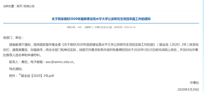 为了更好得让我校符合条件的师生提前准备,今年1月份外事处就在校园网发布了通知,各二级学院、单位大力宣传、精心组织,师生参与的积极性得到普遍提高。2020年国家计划选派2500人出国攻读博士学位,竞争非常激烈。在一附院和研究生学院的支持协助、外事处统筹组织和指导下,我校2名师生以其突出的科研能力和优秀的综合素质,在众多申请者中脱颖而出,成功获得国家留学基金委的资助。