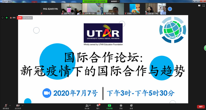 为积极推进疫情防控下的国际交流合作,7月7日下午,我校受邀参加由马来西亚拉曼大学举办“新冠疫情下的国际合作现况与趋势”为主题的线上论坛。学校外事处负责人及工作人员参加线上会议。
