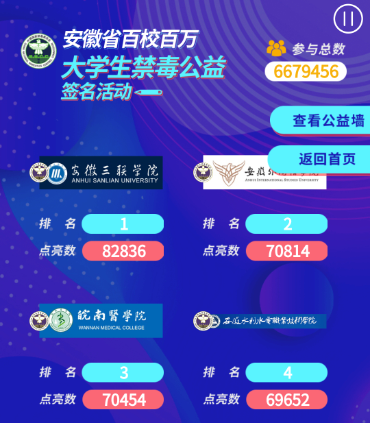 6月间,保卫处与团委、赭山派出所积极联动,开展禁毒宣传活动。通过校园网、微信公众号、QQ群等途径广泛教育宣传,并组织全校青年积极参与由省禁毒办、省教育厅、团省委、省学联联合举办的“2020年安徽省大学生禁毒知识竞赛暨百校百万大学生公益签名”活动。截至目前,我校共计1686人参与知识竞赛,70454人次参与公益签名活动,位列全省高校第三,成功点亮我校在禁毒公益墙上的图标。同时,保卫处联合赭麓校区派出所开展义务禁毒宣传活动,向市民发放宣传单,普及禁毒知识。
