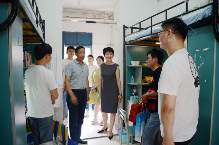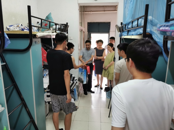 在端午佳节来临之际,6月24日下午,副院长徐朝阳到检验学院学生寝室走访看望第二批返校学生,向学生致以节日问候和祝福,并送上端午爱心礼包。检验学院党总支副书记、副院长崔晓霞,学院辅导员和学生工作秘书等陪同走访慰问。
