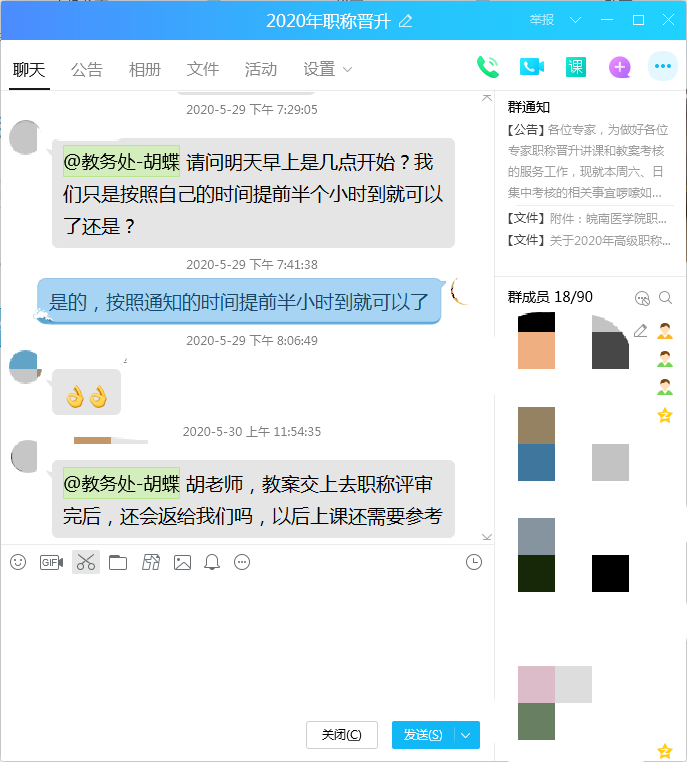本年度我校共有93人申报教学系列高级职称,为客观真实地对申报老师的实际教学水平和能力做出评价,本次考核在符合疫情防控要求的前提下,采取了“专家评价线下面对面、学生评教线上键对键、教案评审同步完成”的考核形式。在为期两天的集中考核中,由校教学督导组成员为主要构成的考核专家组,根据学校相关文件,从教学态度、教学方法、教学设计、教学内容、教学特色等方面对参加教师的教学能力和教案撰写进行了全面、客观、准确的评价,由学校教学信息员组成的学生评委通过腾讯课堂同步直播的形式完成了学生评价。参加考核的教师通过认真准备、积极参与,在考核中展示了端正的教学态度、扎实的教学基本功和深厚的专业知识基础。