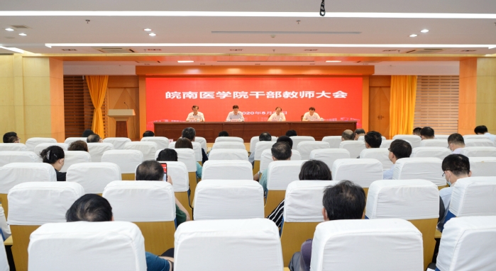 章尧代表校党政作总结报告。他指出,2019年,学校针对2018年度综合考核反馈意见认真抓好整改落实。一年来,学校以习近平新时代中国特色社会主义思想为指导,以“不忘初心、牢记使命”主题教育为主线,以立德树人为根本,以重点工作和专项工作为抓手,推动学校各项事业发展取得显著成效。在党的建设方面,他主要从政治思想建设、主题教育、组织建设、作风建设、纪律建设、反腐败斗争、统战工作、贯彻党委领导下的校长负责制、落实党建工作责任制等方面进行了详细汇报。在事业发展方面,他主要从依法治校、人才培养、师资队伍建设、科学研究、社会服务、文明校园创建、国际交流合作等方面进行详细汇报。同时,章尧还从思想引领、工作机制、群防群控和联防联控、患者救治、舆论宣传等方面报告了学校新冠肺炎疫情防控工作开展情况。章尧表示,面对新形势、新任务、新要求,学校将以习近平新时代中国特色社会主义思想为指导,紧扣立德树人根本任务,解放思想、凝心聚力,求真务实、开拓创新,努力开创学校党建和事业发展新局面!