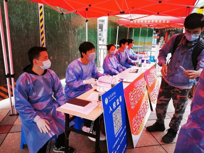 滨江校区入口处防控现场