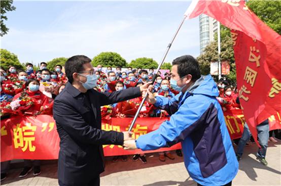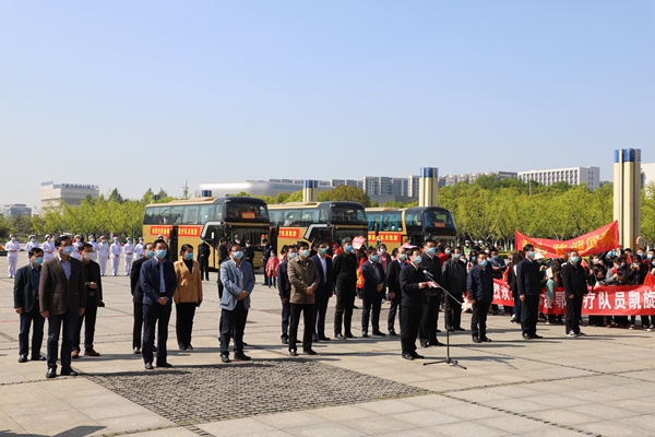 潘朝晖代表市委、市政府和全市人民热烈欢迎队员们平安凯旋,并嘱咐大家回来后调整休息,以更加饱满的精神状态和健康的体魄重回工作岗位。医疗队员们精神奕奕,纷纷表示将继续为守卫全市人民健康而坚守职责。