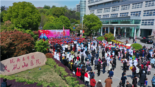 一附院还在院门广场举行了简朴而隆重的欢迎仪式,徐朝阳代表院党政和全院医护员工向医疗队表示最衷心的感谢和最崇高的敬意。医疗队队长、一附院副院长黄后宝报告了医疗队在湖北的工作情况,代表医疗队向医院交还签满所有队员姓名的队旗,朱向明代表医院收旗。仪式结束后,队员们纷纷在签名墙上签名、留影,记录下这段并肩前行、守望相助的难忘时光,同时也在内心深处烙上弥足珍贵的武汉记忆。