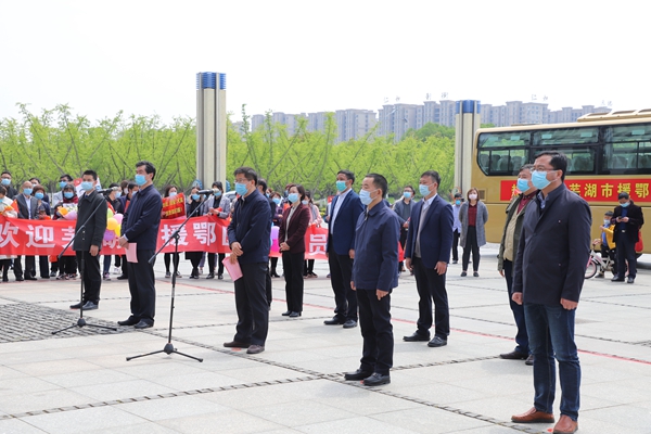 勇士逆行时,朔风凛冽寒未尽;英雄归来日,春华正浓花满枝。2020年4月14日上午,我校两所附院首批援武汉医疗队员与市兄弟医院医疗队员一同顺利返回芜湖,芜湖市委常委、组织(统战)部部长杨志斌、副市长贺东等市领导,我校第一附属医院(弋矶山医院)党委书记徐朝阳、第二附属医院党委书记李萍,医院相关科室和部门负责人等在市政务中心,隆重欢迎英雄平安回家。