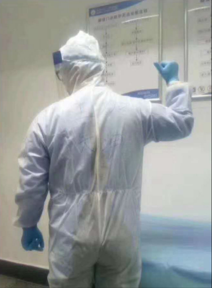 医院发热门诊急需医生支援,董天说:“我是年轻人我先上,我是共产党员我先上!”,并于1月26日起在发热门诊接诊。由于患者收治时间比较集中,不论白天黑夜都要穿着密不透风的防护服,不吃不喝不上厕所,连续接诊几十个待查病人成为常态。穿上防护服久了,呼吸也会受到影响,时常会感到胸闷,说话要明显费力一些,甚至会觉得对方的声音很遥远。护目镜上布满雾水,写病历也会变得很慢很费劲。高强度的工作让董天体力透支,同事们知道他有慢性肾病,便询问他的身体情况,但他总是笑着说:“多一个人多一份力量,我可以坚持!”