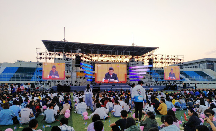 活动现场,校领导和我校近4000名青年代表集中观看了习近平总书记在纪念五四运动100周年大会上的讲话,深刻领悟总书记对广大青年的关心厚爱和殷切期望。