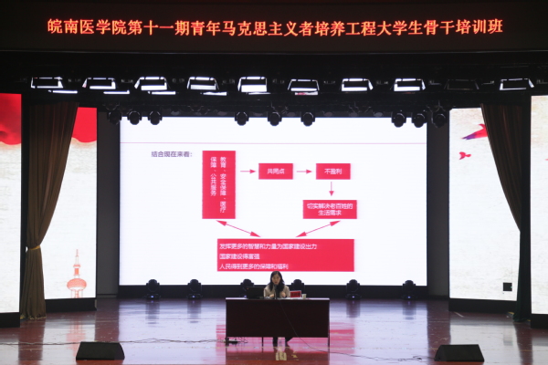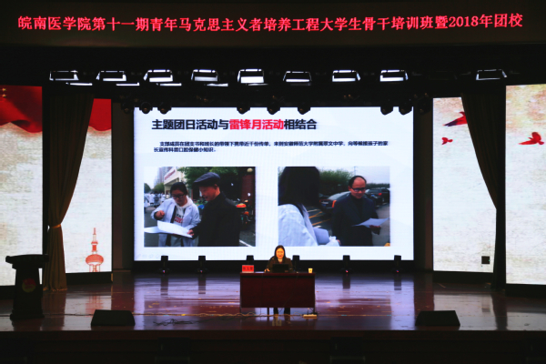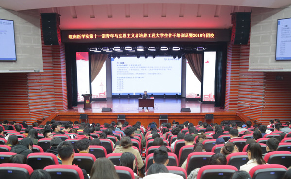 在随后两天的集中培训中,由安徽五四奖章获得者、援非医生秦勤,安徽工程大学团委书记冉昆玉,安徽信息工程学院团委书记陈振,我校团委副书记饶婷婷和全国高校活力团支部书记张玉雯等组成的宣讲团结合党的十九大精神和团的十八大精神分别为学员讲授了《从皖医到东非小岛》、《高校新媒体工作理论与实务》、《做校园品牌活动,争做校园小主人》、《习近平青年观的科学内涵与实践要求》、《班级团支部建设经验交流》等专题。全体学员还共同观看了影片《青年马克思》。