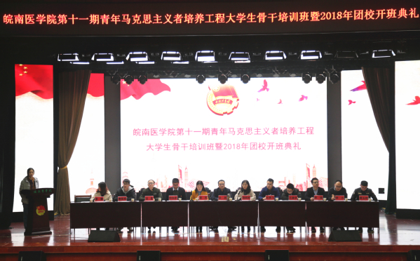 为深入学习宣传贯彻党的十九大精神和团的十八大精神,提升团学骨干理论水平和业务能力,加强团的基层组织建设,培养一批品学兼优、知行合一、具有一定领导力和模范带头作用的学生骨干,12月1日,校第十一期“青年马克思主义者培养工程”大学生骨干校级培训班暨二〇一八年团校开班典礼在大学生活动中心大礼堂举行,校团委和学院团委专兼职教工团干、第十期校级“青马班”优秀学员以及2016-2018级班级团支部书记、副书记等600余人参加开班典礼。开班典礼由校团委副书记饶婷婷主持。