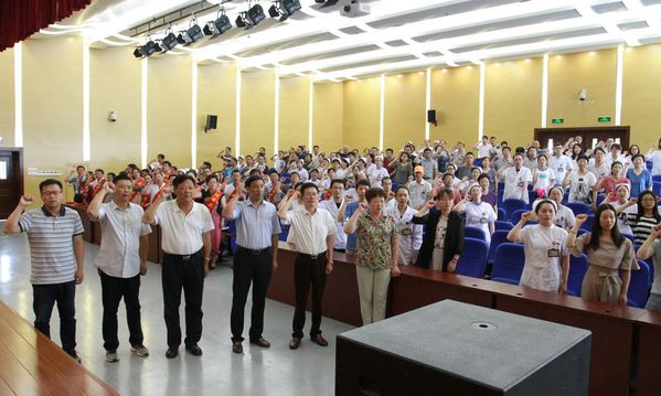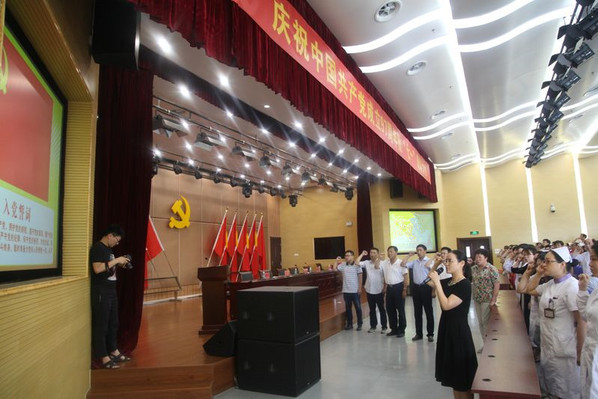 一附院党委书记徐朝阳发表了热情洋溢的讲话,代表医院党委向受到表彰的先进集体和优秀个人、向在党旗下宣誓的新党员表示热烈的祝贺,向全院共产党员、医护员工表示衷心的感谢。在讲话中,徐朝阳深情回顾了中国共产党成立97年来所走过的波澜壮阔历史进程和作出的伟大历史贡献,回顾了党的十八大以来,以习近平同志为核心的党中央团结带领全党全国各族人民取得的重大成就,回顾了在党的坚强领导下医院不断发展壮大的历程。他指出党组织是医院事业的领导核心,共产党员是医院建设的中坚力量。2018年是贯彻党的十九大精神的开局之年,也是落实全面从严治党要求、奋力实现“十三五”发展目标的重要一年。全院各党支部和党员干部要突出思想教育,深入学习领会习近平新时代中国特色社会主义思想,深入学习宣传贯彻党的十九大精神,忠实践行“四个意识”,铸牢共产党人绝对忠诚的政治灵魂。要抓好组织建设,以基层党组织标准化建设为抓手,履行好管党治党主体责任,推动全面从严治党向纵深,夯实基层党建的基础工作。要强化纪律执行,主动对标省委专项巡视省卫生计生委党组反馈意见,从严从实推动整改工作,严守政治纪律和政治规矩,巩固风清气正的良好政治生态。要立足本职工作,强化党建引领,保证党员干部忠诚干净担当、发挥“关键少数”作用,保证广大党员以身作则、发挥先锋模范作用,扎实做好改革发展稳定各项工作。最后,他号召全院党员和医护员工在建党97周年的历史节点,在医院130周年华诞的喜庆时刻即将到来之际,切实增强历史使命感和政治责任感,不忘初心、继续前进,不断开创医院党建工作新局面,为实现建设高水平省级区域综合性医学中心的奋斗目标做出更大的贡献。