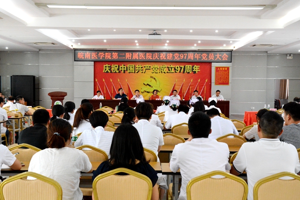 6月28日下午,在中国共产党成立97周年到来之际,二附院在5号楼四楼会议厅召开庆祝建党97周年党员大会暨党课报告会。二附院党政领导、全体党员、中层干部、团支部书记、民主党派负责人、党风党纪监督员、特邀监察员等200余人参加会议。党员大会由党委委员、副院长胡宏伟主持。