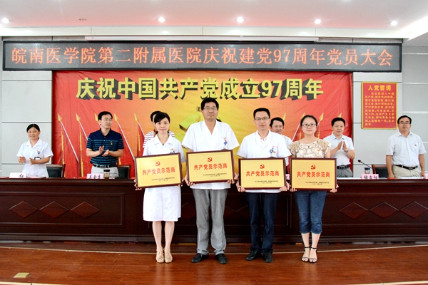 会议表彰了一批先进集体和个人,授予呼吸内科等4个科室“共产党员示范岗(集体)”称号,授予张敏玲等11人“共产党员示范岗(个人)”称号。二附院党政领导分别为受到表彰的先进集体和个人颁奖。门诊党支部书记陈水清代表先进集体、临床三党支部党员吴玲芳代表先进个人分别发言。会议举行了党风党纪监督员和特邀监察员聘任仪式,医院党政领导为受聘对象颁发了聘书。会议还进行了新党员宣誓和老党员重温入党誓词。