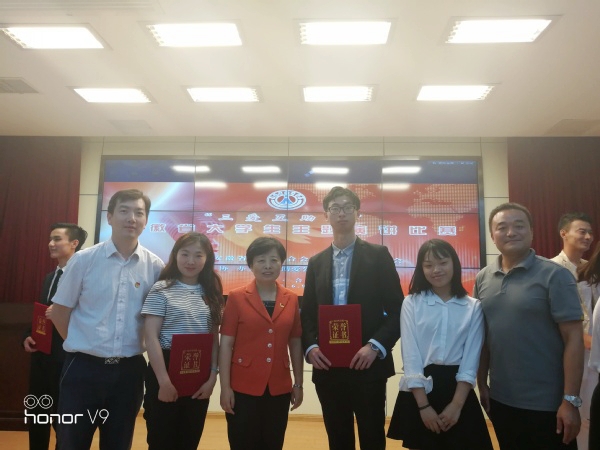 团省委副书记张敏、团省委学校部副部长徐波与我校参赛团队合影