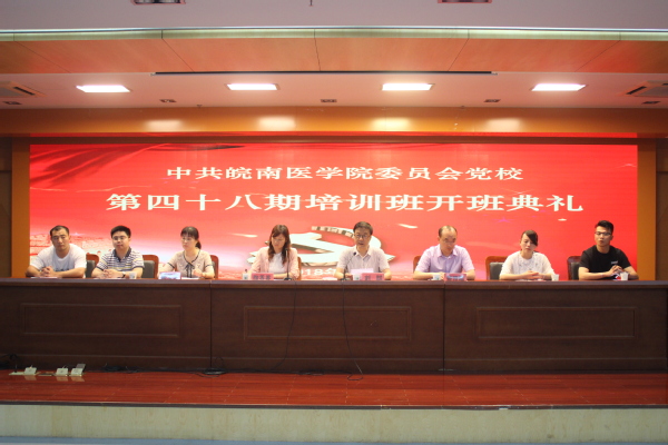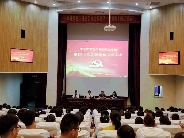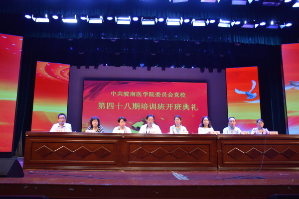 2018年5月18日,中共皖南医学院委员会党校第四十八期入党积极分子和发展对象培训班开班典礼在大学生活动中心礼堂举行。校党委委员、组织部部长、党校常务副校长方国庆,组织部副部长、党校副校长任苔蓉,各相关二级党组织负责人出席开班典礼并在主席台就座,本期培训班全体学员和班主任参加开班典礼。开班典礼由任苔蓉主持。
