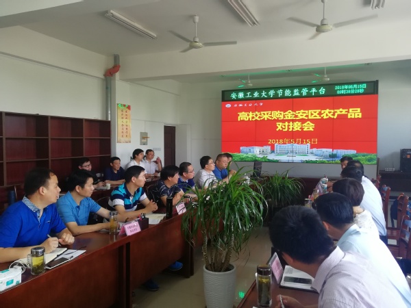 为贯彻落实省委、省政府关于深入推进精准扶贫精准脱贫的决策部署,稳步推进我校“面向采购”工作,根据安徽省教育厅、省扶贫办、省农业委员会《关于实施高校食堂面向贫困县(市、区)采购农产品的通知》文件精神,5月15日,我校后勤管理处副处长毛毅力、副科长陈少辉和部分在校餐饮经营单位代表前往安徽工业大学,参加由六安市金安区扶贫办组织的高校采购贫困地区农产品对接会。金安区农委主任胡琦、副主任潘圣余、扶贫办副主任严燕,以及金安区部分农产品供应企业代表出席了会议。与我校同为金安区扶贫对接单位的安徽工业大学、河海大学文天学院等5所高校代表参加了会议。