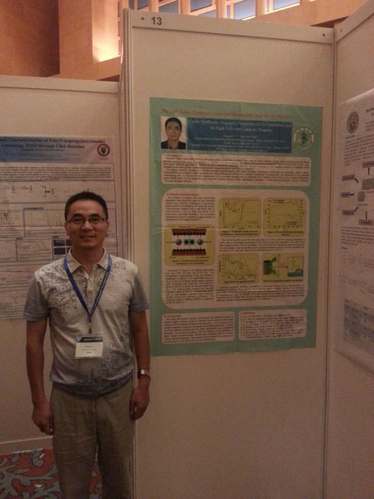 此次大会由CMA International Consultants Pte Ltd和新加坡化学学会(SNIC)联合主办,来自中国、美国、英国、法国、澳大利亚、日本等近1500名代表参加了会议。李祥子老师向大会提交了题为“Facile Synthesis, Magnetic Properties of Ni Nanotubes and Its High Efficient Catalytic Property”的最新研究论文,并以海报形式展出。这次参会,不仅扩大了我校在化学研究领域的影响,也通过会议交流学习到国际先进的科研理念和科学方法,拓宽了学术视野,实现了学术的国际接轨,对我校分子生物学硕士点及化学学科今后的发展具有一定的促进作用。