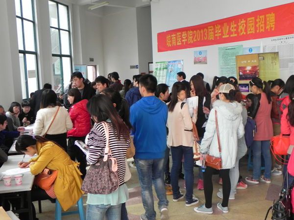 4月11日,我校第三场2013届毕业生校园招聘会在大学生活动中心如期举行,浙江省临安市昌化人民医院、南京市高淳区中医院、淮安市中医院、中煤矿建总医院、黄山市第三人民医院等23家省内外用人单位参加此次招聘会,提供就业岗位近600个,涉及临床、麻醉、影像、口腔、药学、护理、公管、信管、法学、预防等各专业,中煤矿建总医院、黄山市第三人民医院、南京维汝康医疗器械有限公司等7家单位还进行了宣讲和面试,达成就业意向49人。