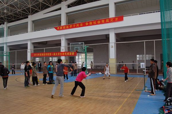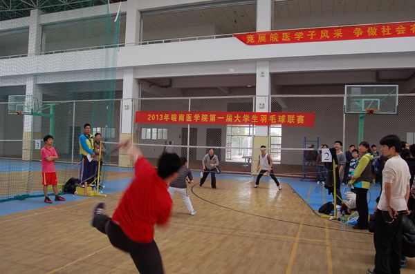 为进一步推进学院全民健身活动的深入开展,丰富学生的课余文化生活,增强学生团结合作与顽强拼搏意识,同时为广大羽毛球爱好者提供交流学习的机会,由校体委主办、体育教研室承办的2013年皖南医学院第一届大学生羽毛球赛于3月25日—29日在我校体育馆举行。