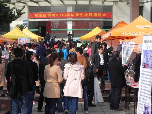 阳春三月,春暖花开。我校2013届毕业生首场春季校园招聘会如期在大学生活动中心广场举行,来自全国各地61家用人单位参加招聘会,提供就业岗位1300多个,涉及临床、麻醉、影像、口腔、药学、护理、公管、信管、预防等各个专业。