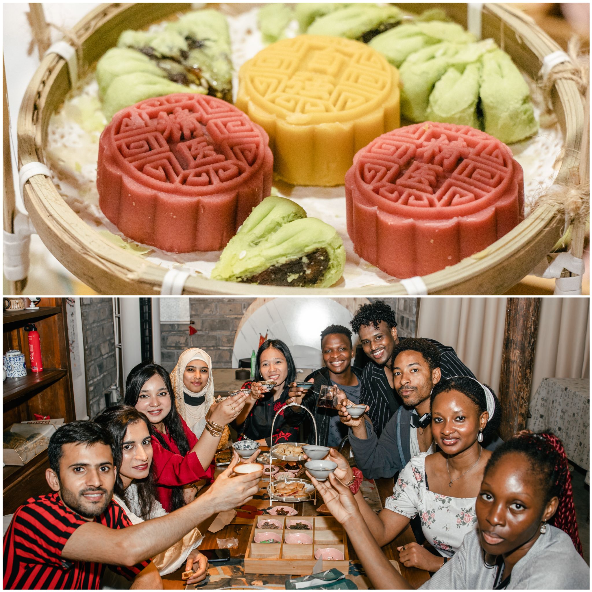 国际学生们围坐在一起,一边品尝月饼,一边分享自己国家的传统节日与饮食文化。来自尼日利亚的学生宝妹拿着一块月饼说:“这是我第一次吃月饼,甜而不腻,口感很好。我们国家的传统节日也会有特色食物,今天能和大家一起分享月饼、了解中秋,感觉就像和家人在一起一样温暖。”