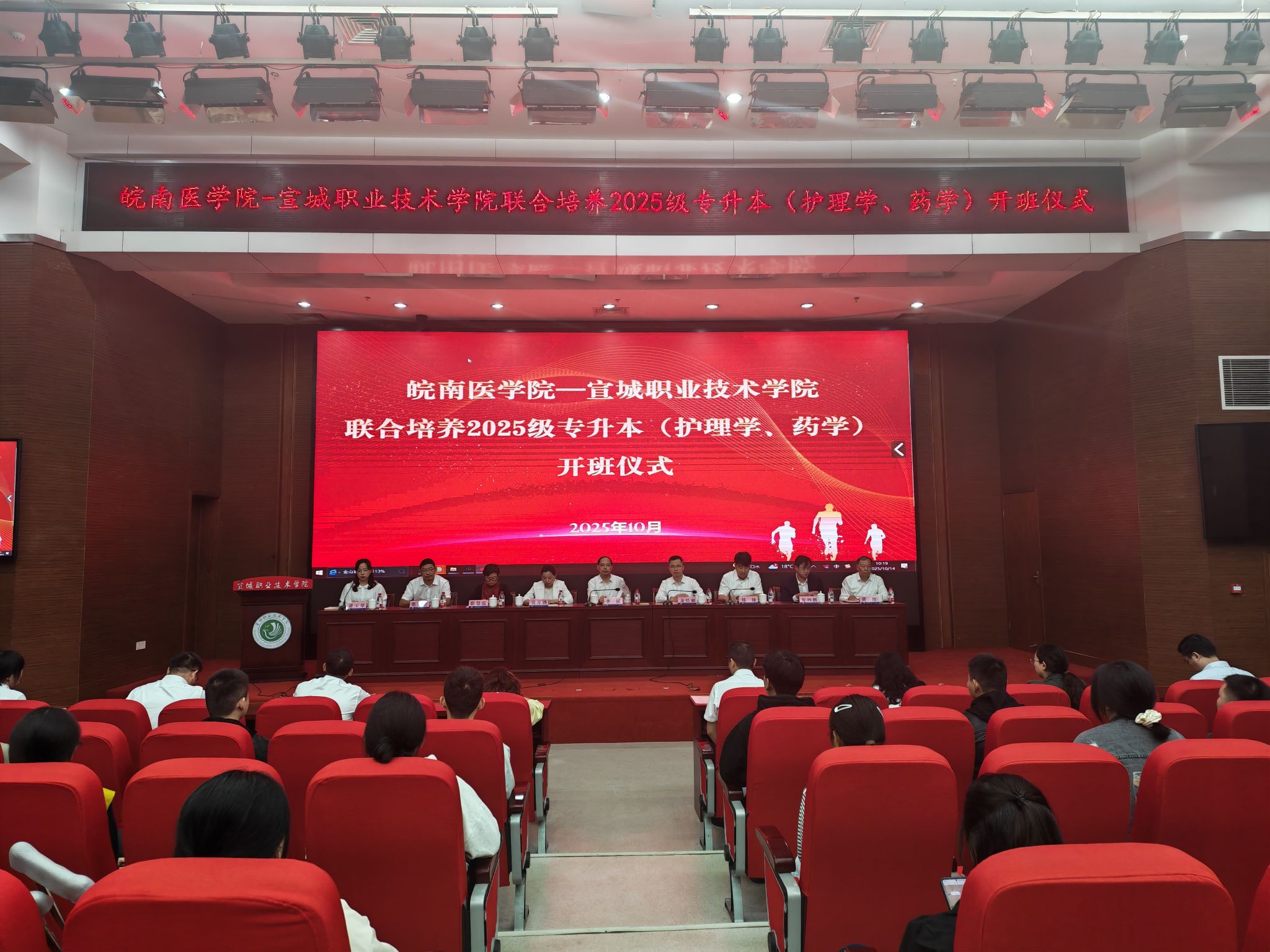 10月14日上午,我校与宣城职业技术学院联合培养2025级专升本(护理学、药学)开班仪式,学校党委常委、副院长余结根,宣城职业技术学院党委书记李斌、党委委员韩锋出席开班仪式。仪式在宣城职业技术学院图书馆报告厅举行。