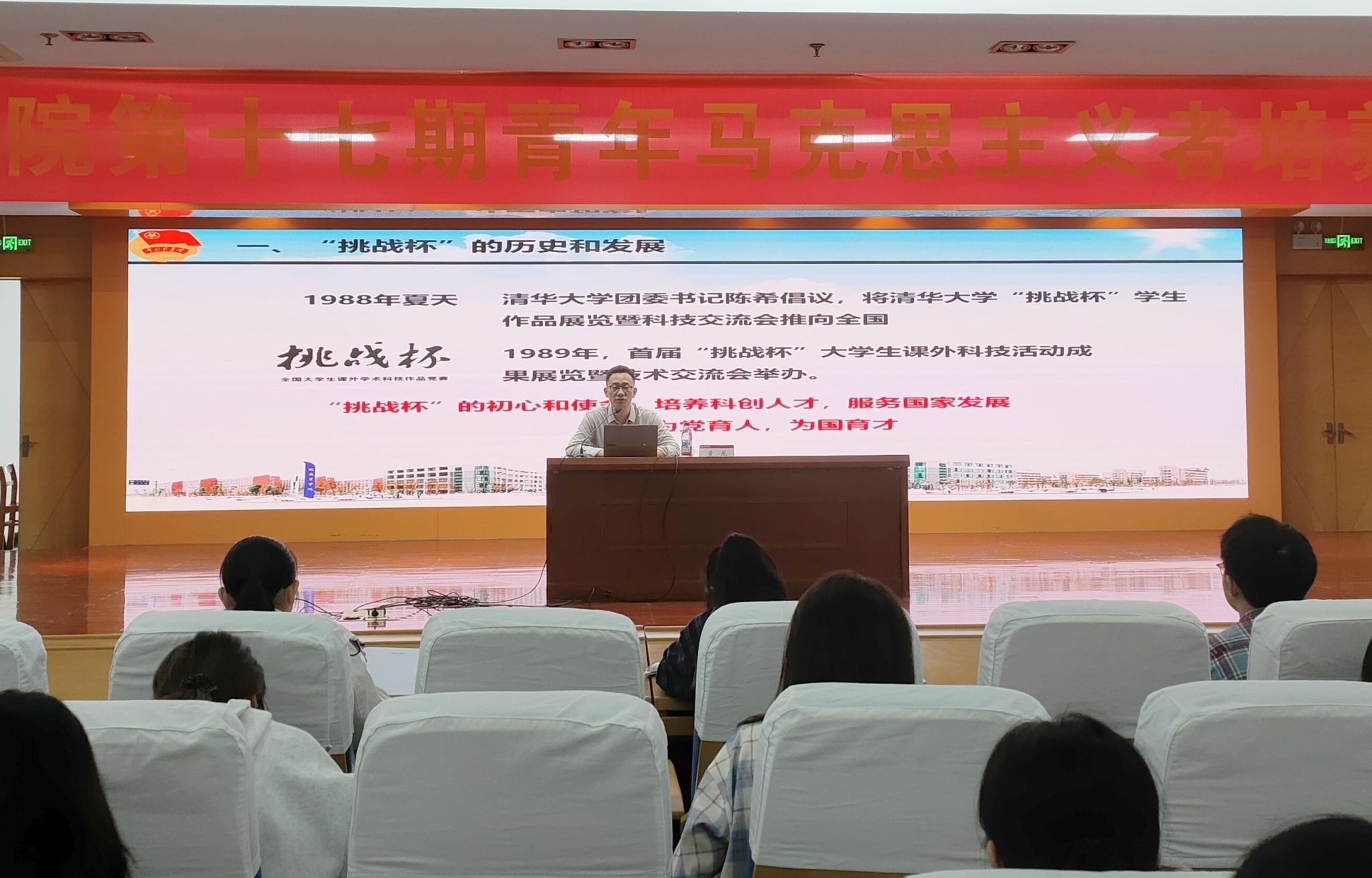 黄龙以“从思想高地到创新热土:青马学员的科技创新之路”为题,以“挑战杯”全国大学生科技学术竞赛A类赛事为例,系统介绍了该项赛事的发展历程、赛道设置与备赛策略,解析了“大挑”与“小挑”的区别与联系,展示了我校近年来在“挑战杯”赛事中取得的突破性成绩,并鼓励学员们在“以赛促学、以赛促创”中践行科技报国使命,实现思想引领与创新能力的同步提升。