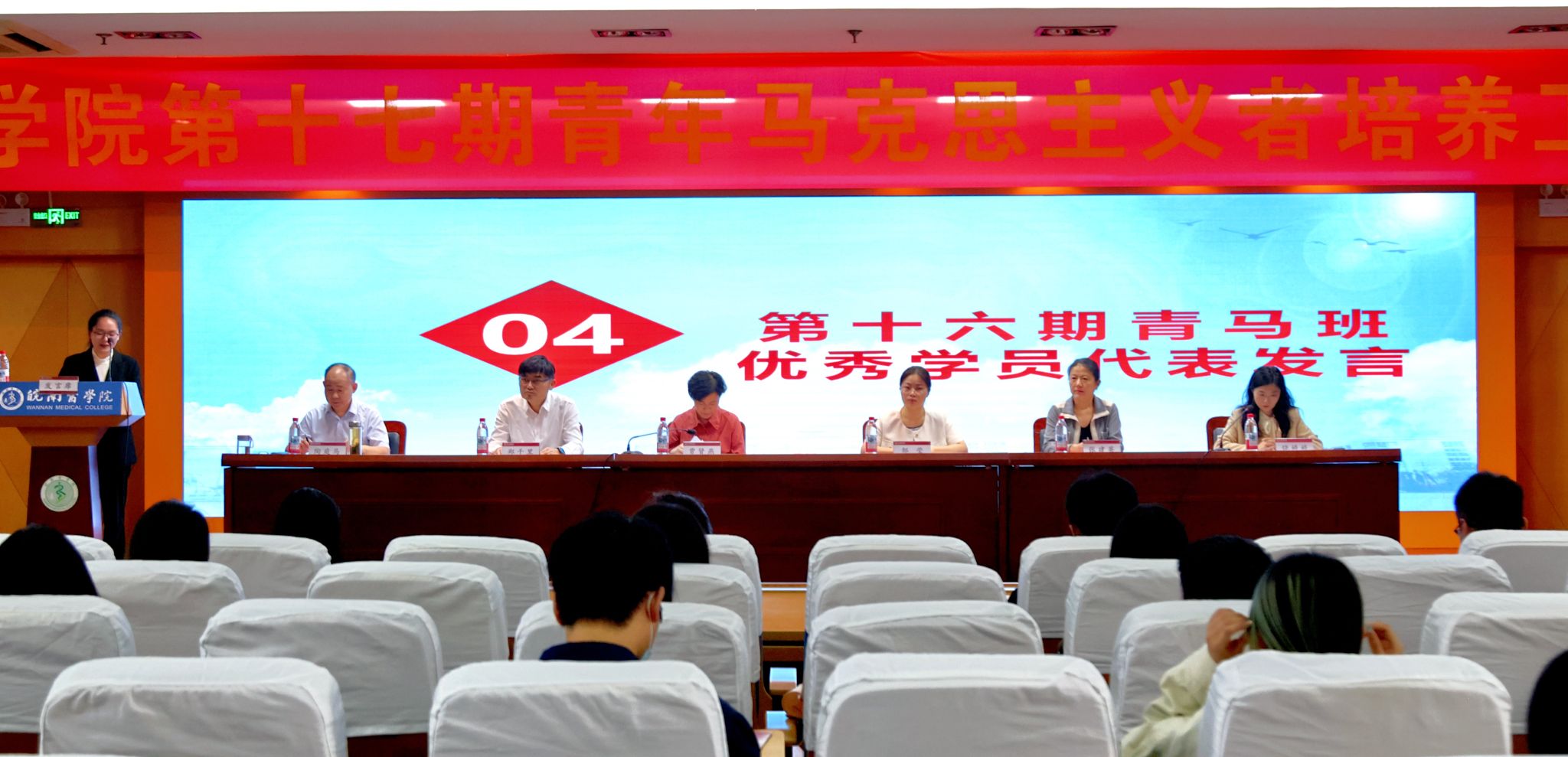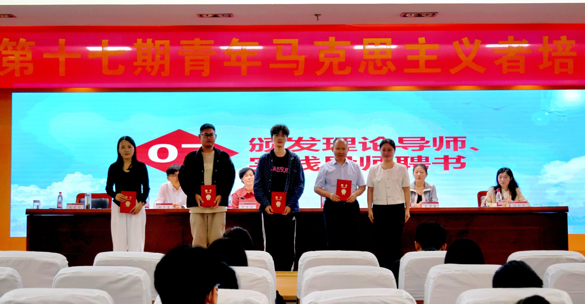 开班式上宣读了校第十六期青马班学员结业和表彰文件,与会领导为优秀学员代表颁发荣誉证书,为理论导师和实践导师颁发聘书,并为第十七期“青马工程”骨干培训班授旗。优秀学员代表芮尔安与新学员代表操雅铭分别作经验分享和表态发言。