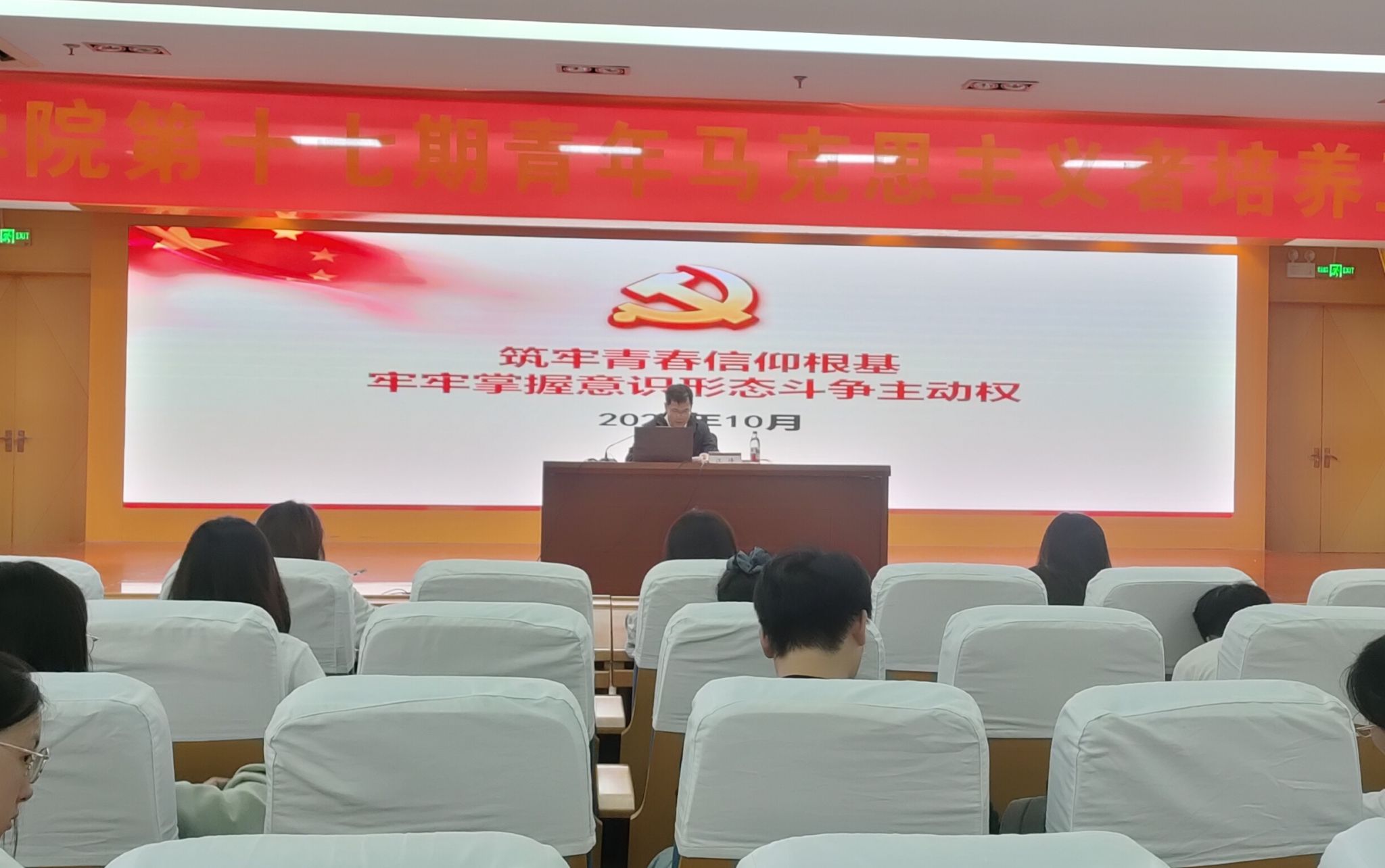 开班仪式后,马克思主义学院院长陶庭马、团委副书记黄龙、宣传部副部长汪峰、纪委办公室案管审理室主任马金珠为全体学员作专题讲座,第十七期青马班全体学员参加学习。