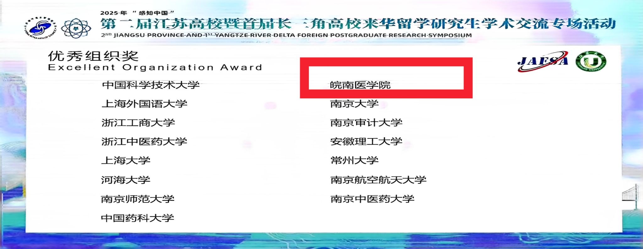在这场汇聚长三角地区众多高校优秀学子的学术盛宴中,我校国际学生在张文众、査磊和杨竹三位老师的悉心指导下,凭借扎实的学术功底与出色的研究能力赢得评委的充分肯定,2024级公共卫生与预防医学专业永新、2024级临床医学专业思阳、2023级基础医学专业周慕汉分别获一、二、三等奖,充分展现了我校在国际学生培养及学术交流领域的突出成绩。