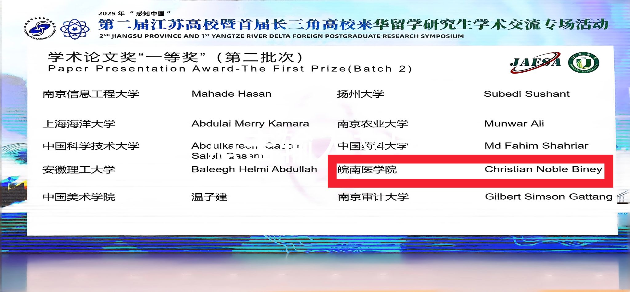 此次获奖不仅是对国际学生个人能力的认可,更是我校国际教育成果与教师团队指导水平的生动体现。未来,我校将继续加强国际学生培养工作,进一步完善教师指导机制,搭建更多学术交流平台,鼓励国际学生与指导老师深度协作,不断提升学校国际教育水平与影响力,为培养更多优秀医学人才贡献力量。(林菁/文、图)